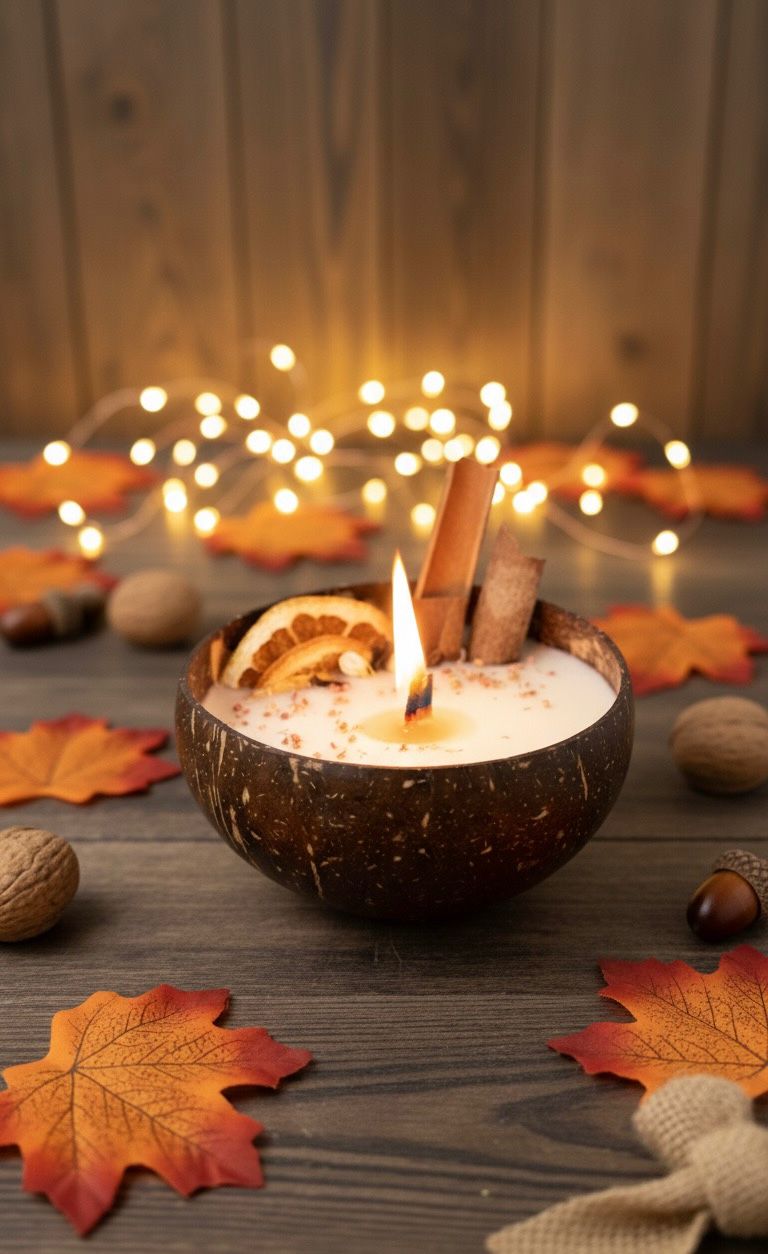 Bring the warmth and spice of the season into your home. This hand-poured coconut shell candle features notes of cinnamon, orange zest, and nutmeg—the perfect scent for crisp evenings and gathering with friends.