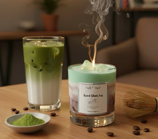 Iced Vanilla Matcha Swirl | Layered Artisan Latte Candle with Wax Ice Cubes
