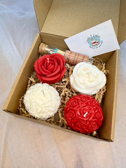 Ruby Bloom Trio | Hand-Poured Floral Heart Candle Set