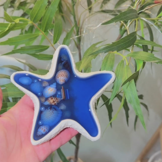 Bring the calm rhythm of the sea into your home with this Sea Marine Gel Wax Candle, beautifully crafted in a stunning starfish-shaped ceramic bowl. Designed to look like a miniature shoreline, the crystal-clear blue gel wax captures the essence of tranquil waters, revealing delicate seashells and ocean-inspired details beneath the surface.